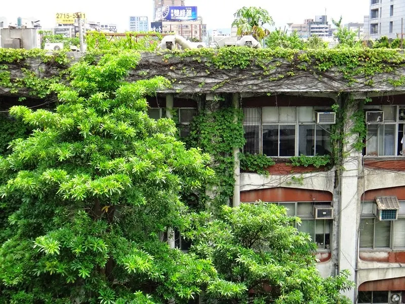 去年,黑板樹長到與大樓快要齊高了,卻被修剪了。