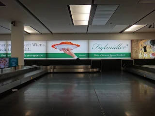 一片薄薄豬排餐是維也納的特色,機場就看得到宣傳海報,價格約台幣