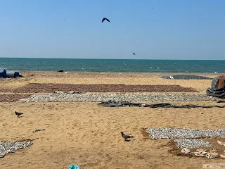 尼甘布 Negombo以其迷人的沙灘與數百年歷史的漁業而聞名,走走市中心附近的漁村市場 Negombo Fish Market ,可以體驗當地人的生活方式。成群的海鳥與烏鴉來到尼甘布魚市尋找食物。由於漁民會將新鮮的魚拿到魚市場加工,魚的內臟與不適合的部位放置沙灘上,餵飽海鳥與烏鴉,所以看不到鳥兒飛進曬魚蝦的場地獵食。