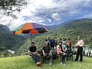四格山設置200多層階梯,木階梯的寬度勘稱台灣第一。登階梯時碰到ㄧ位75歲當地居民,主動打招呼、聊天,告知2000年編列2000多萬元興建木階梯、觀景台、涼亭。從四格山頂的觀景台,眺望白色台東城市、卑南溪、利吉惡地、中央山脈、知本主山、都蘭山與太平洋等360度開闊美景。